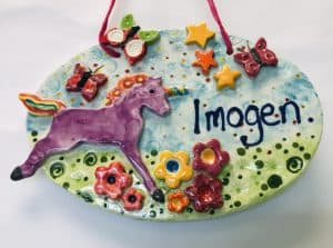 Monday May 29th 10:30 to 12:30 make a ROOM PLAQUE from beginning to end, using high firing white earthenware clay. We will be using slab and coil rolling techniques. Once your clay Room Plaque is made you can paint the raw (greenware) clay using the special glazes, I have for projects like this. Your finished fired Room Plaque will be ready to collect 2 weeks later.